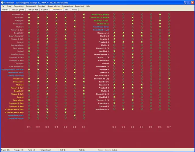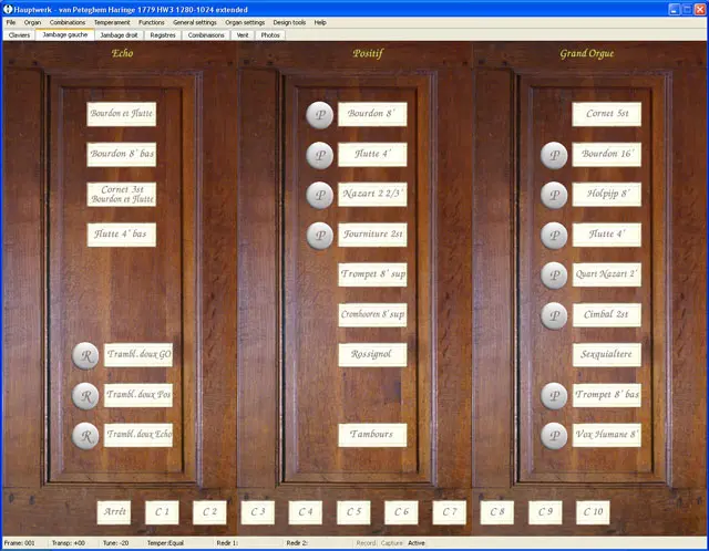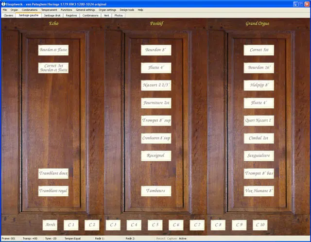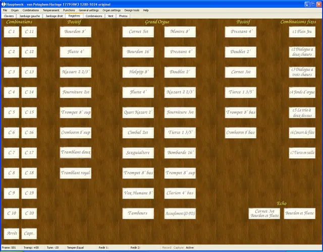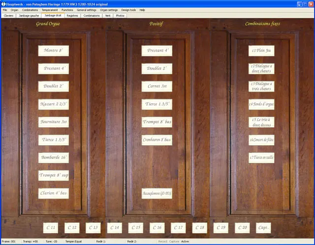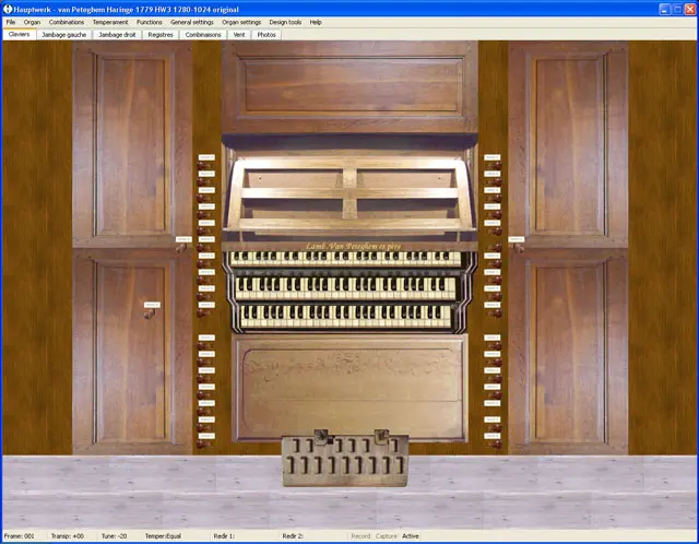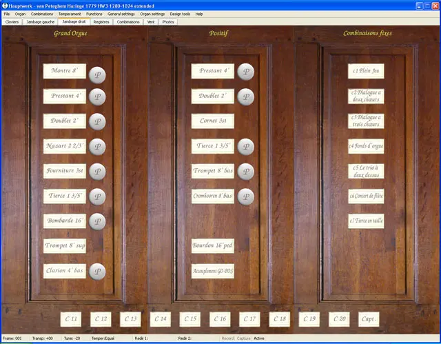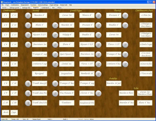 Het orgel is gestemd volgens het temperament van Rameau met a' = 404