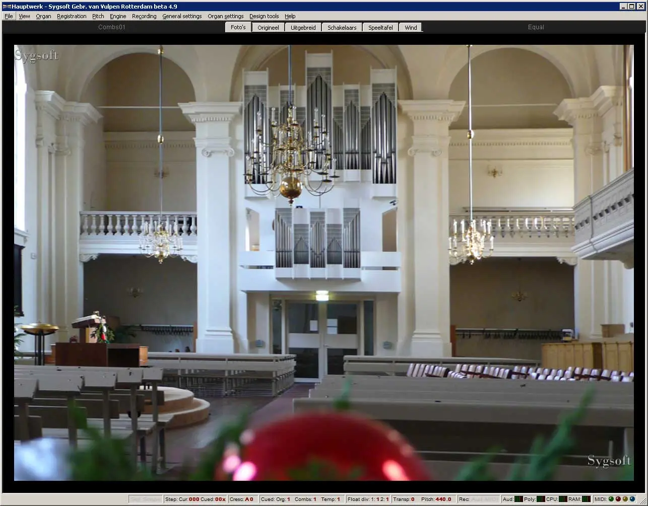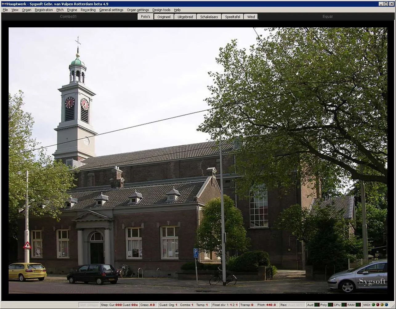 Dit tabblad toont het front van het orgel en als u klikt op de foto