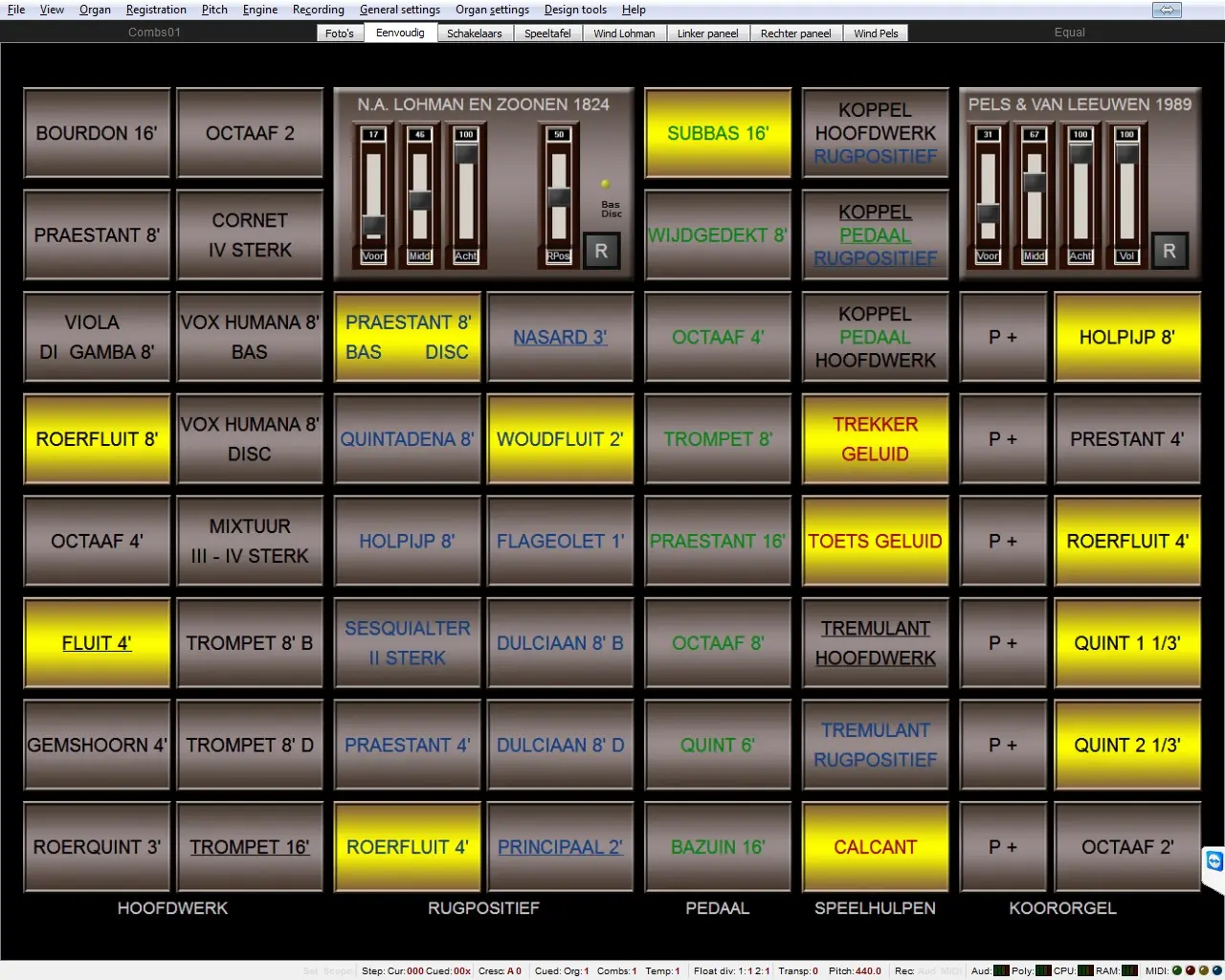 Virtueel registerpaneel beide orgels