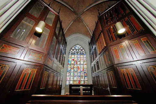 with the pipe shoes reinforced with mahogany. The Great Organ has two chests: one for the principal stops and one for the combination stops.