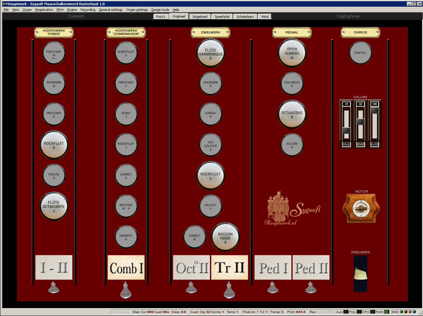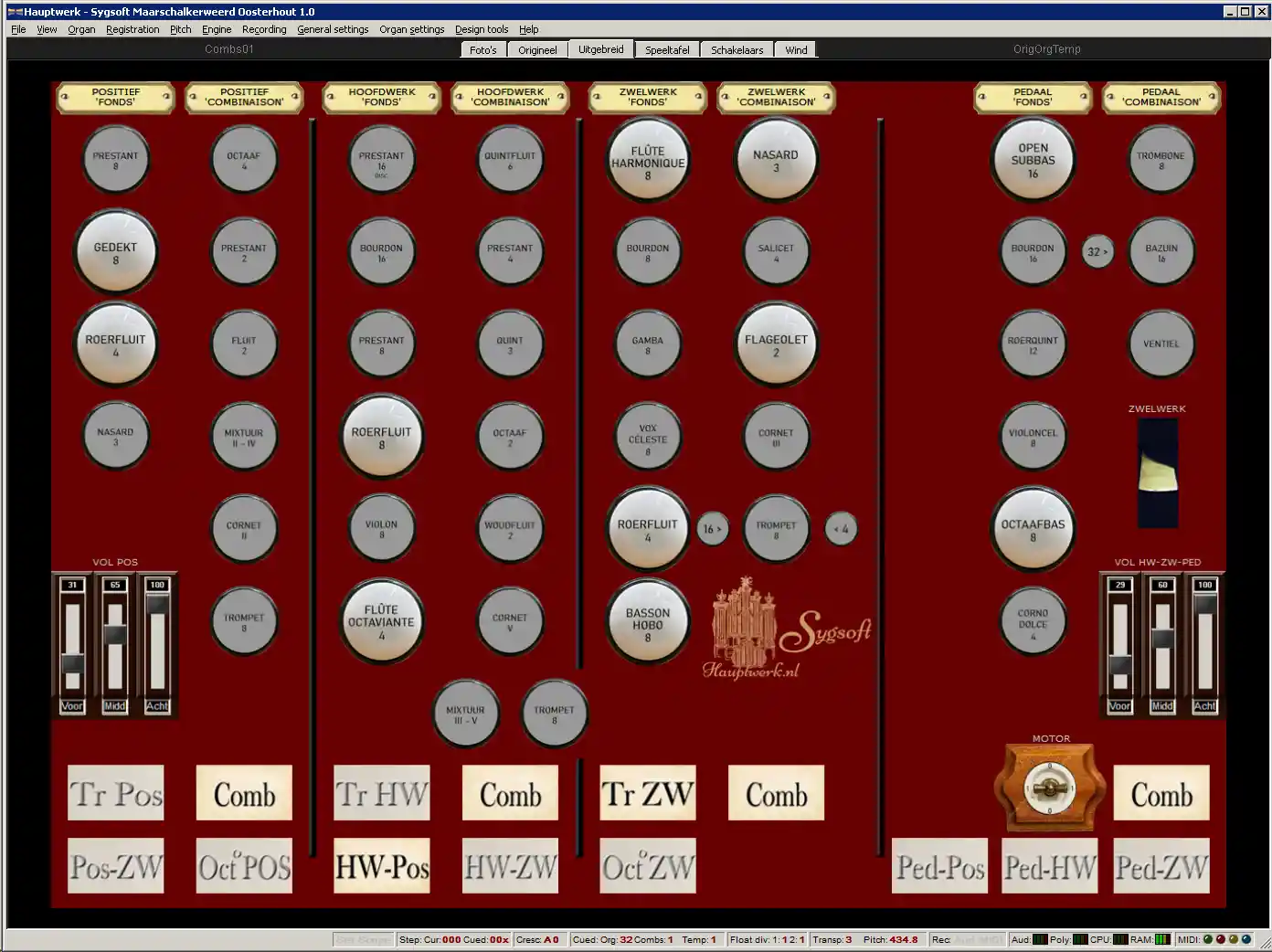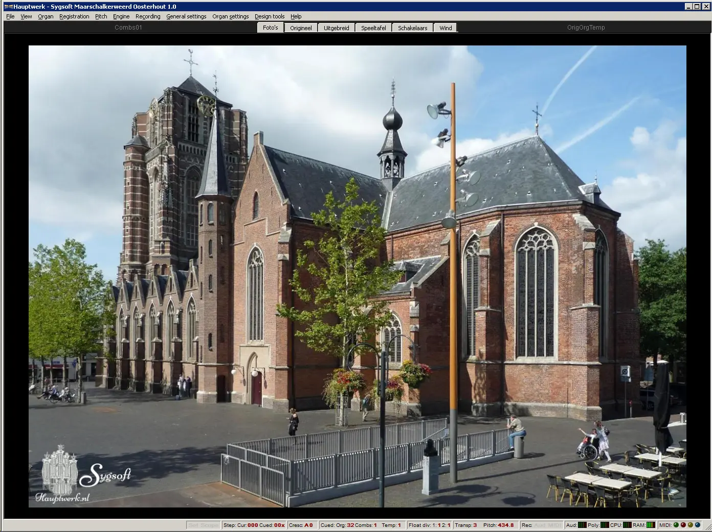 He voiced the Oosterhout organ quite broadly, a practice he continued in his instruments for Paramaribo (cathedral, 1890), Sneek (St. Martinus, 1891), Amsterdam (Concertgebouw, 1891), and Delft (Maria van Jesse Church, 1893).