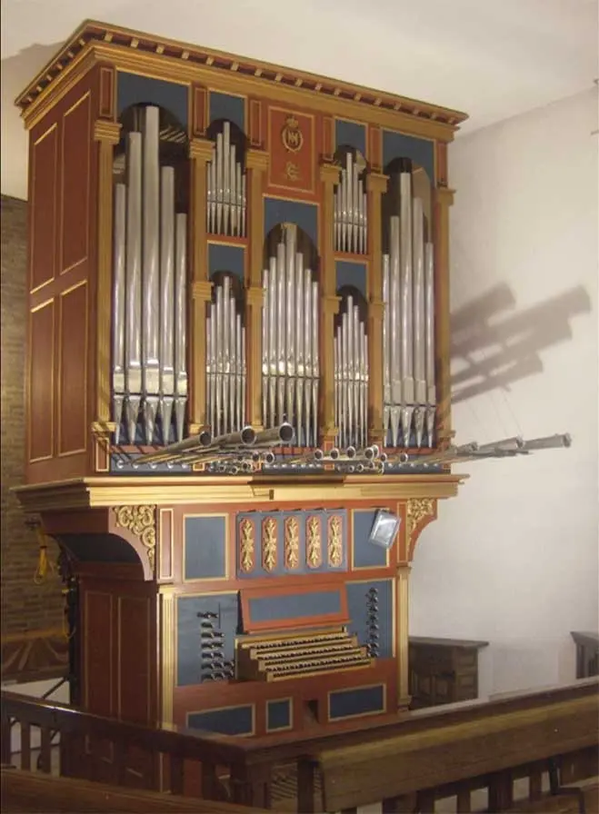 Een bijzonderheid is de horizontale Trompet met kelen van kersenhout
