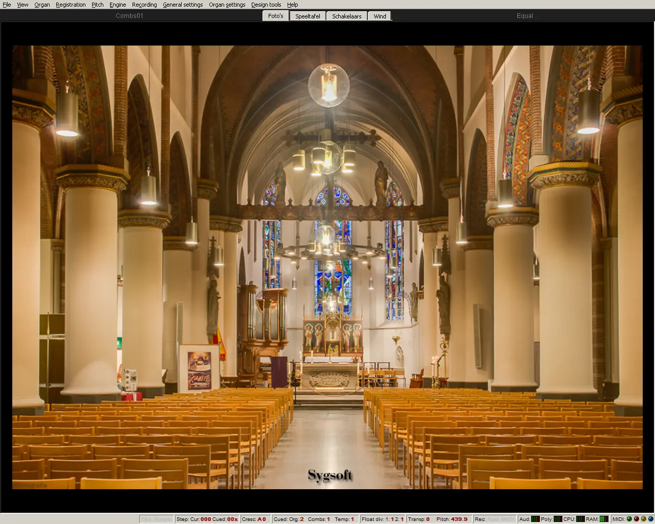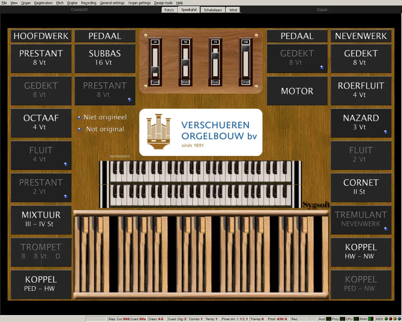 Dit tabblad toont het front van het orgel en als u klikt op de foto