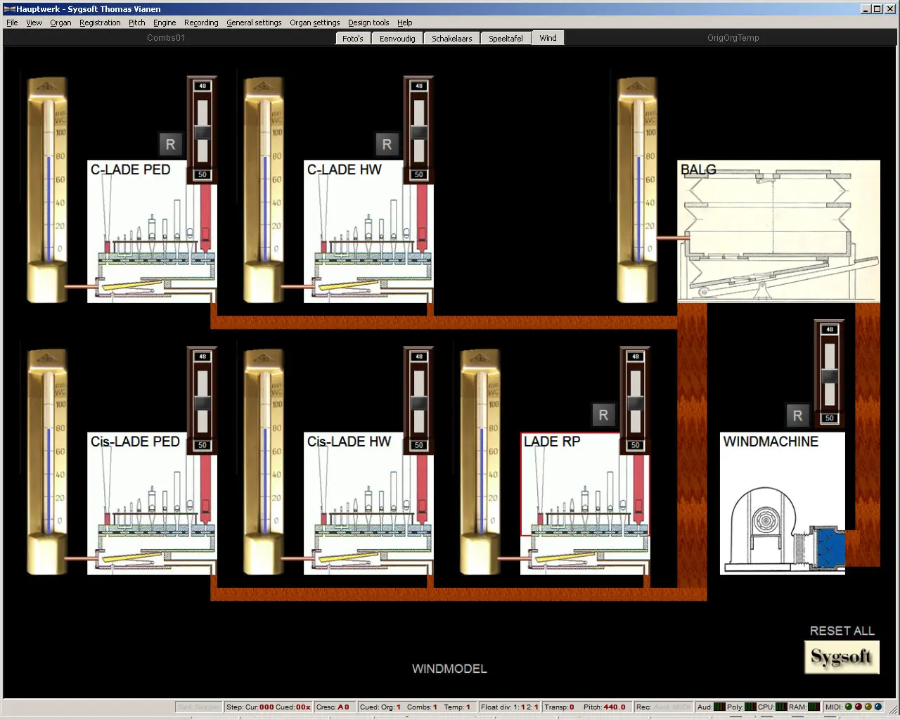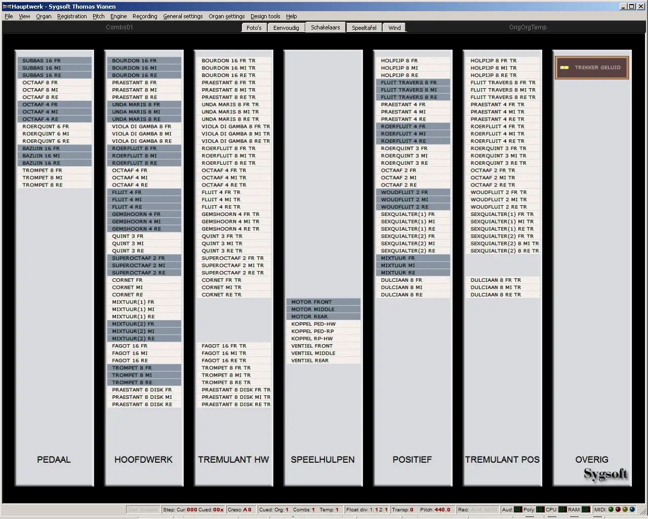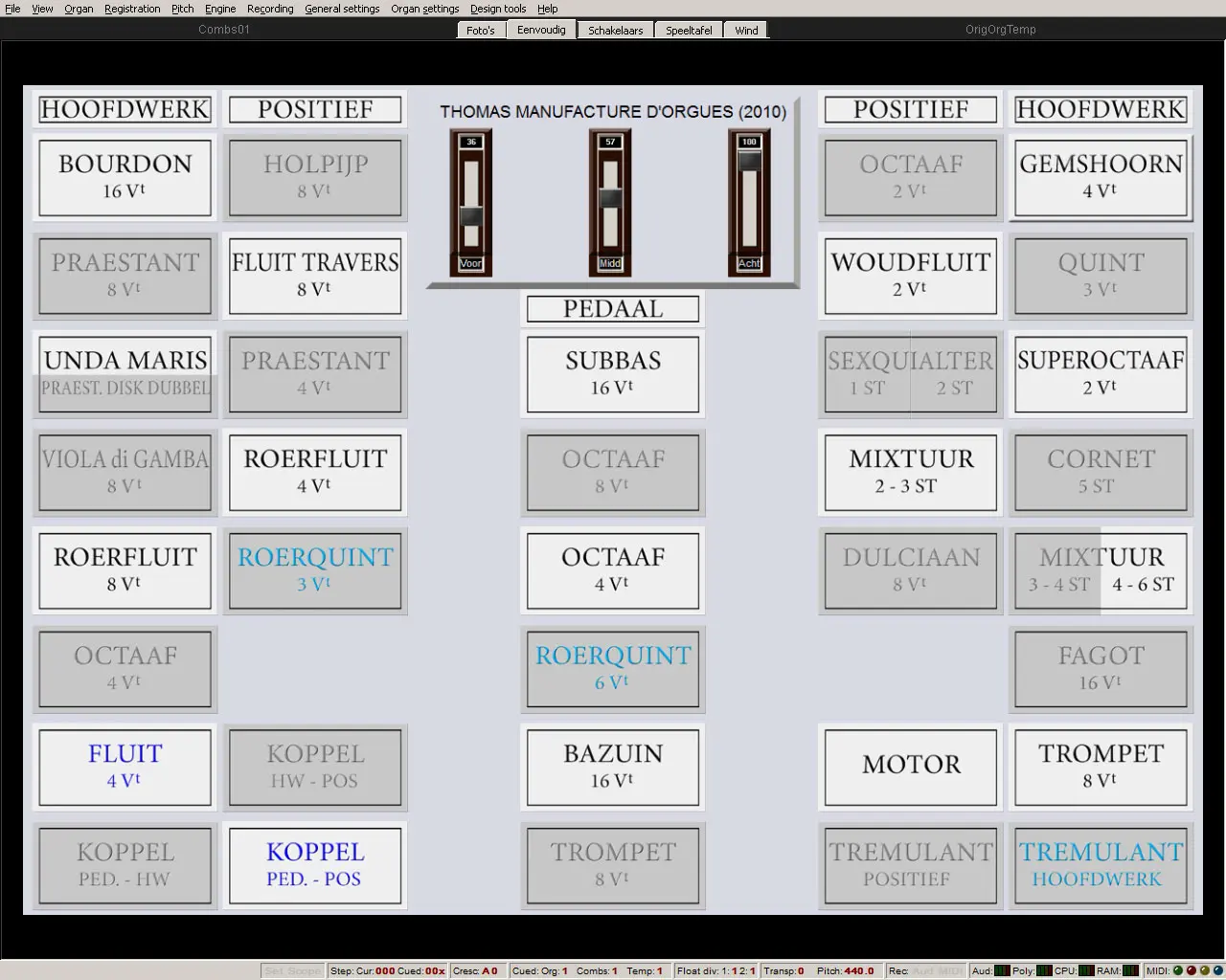 De knoppen met de blauwe tekst zijn voor Hauptwerk bijgemaakt gebruik