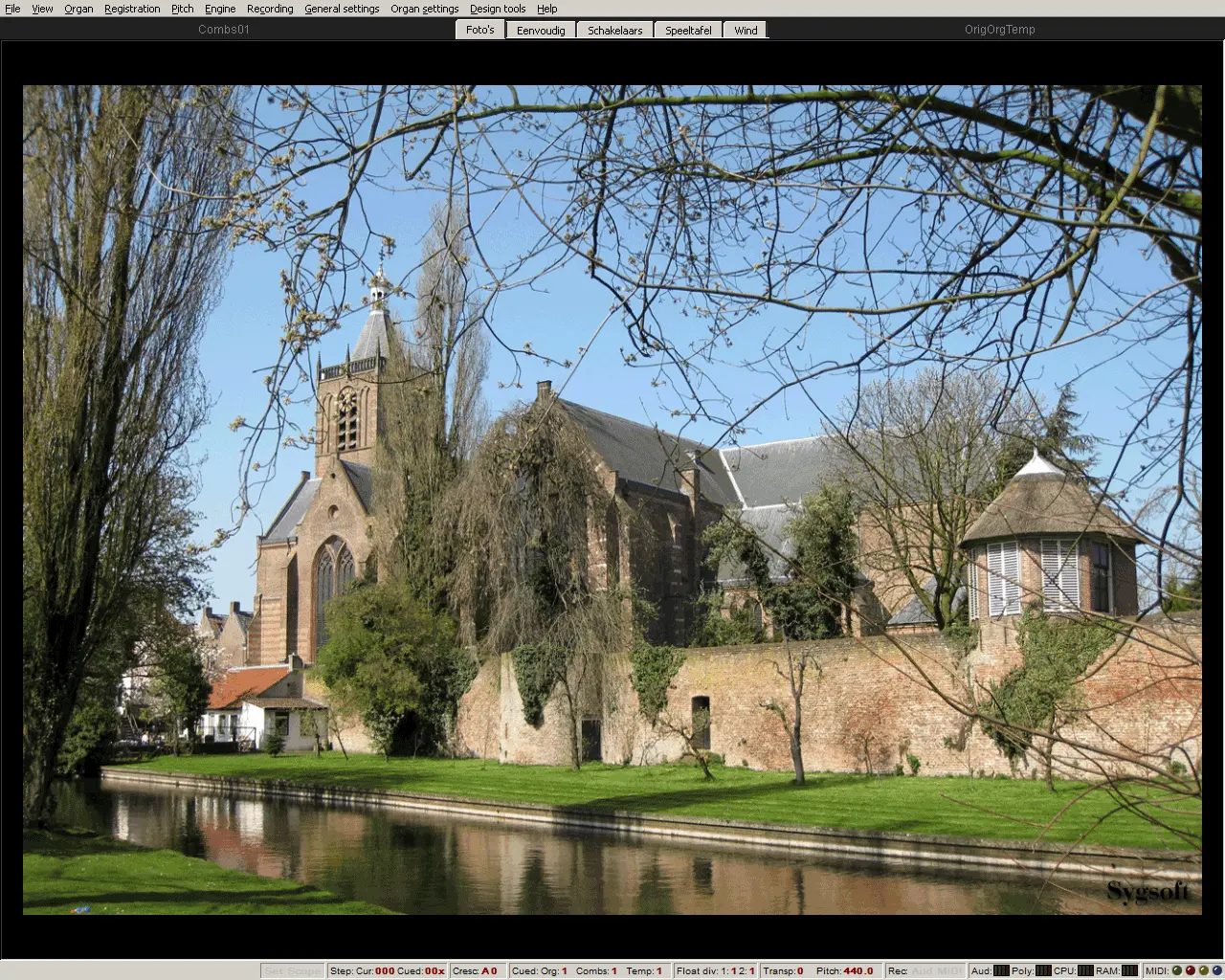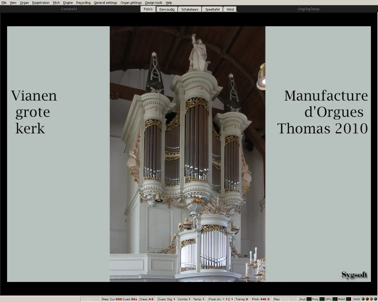 Dit tabblad toont het front van het orgel en als u klikt op de foto