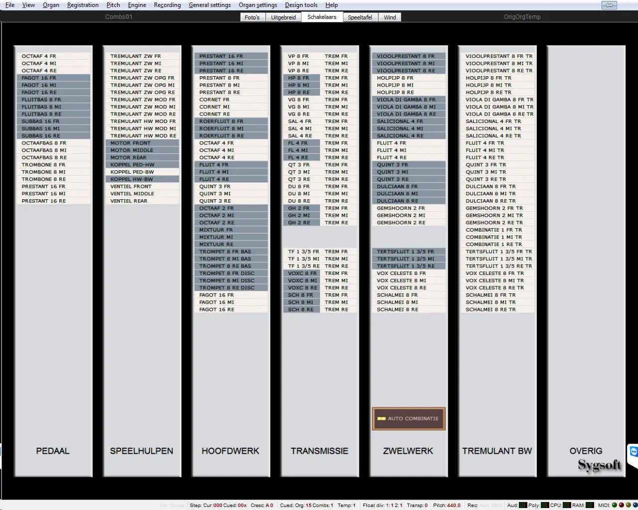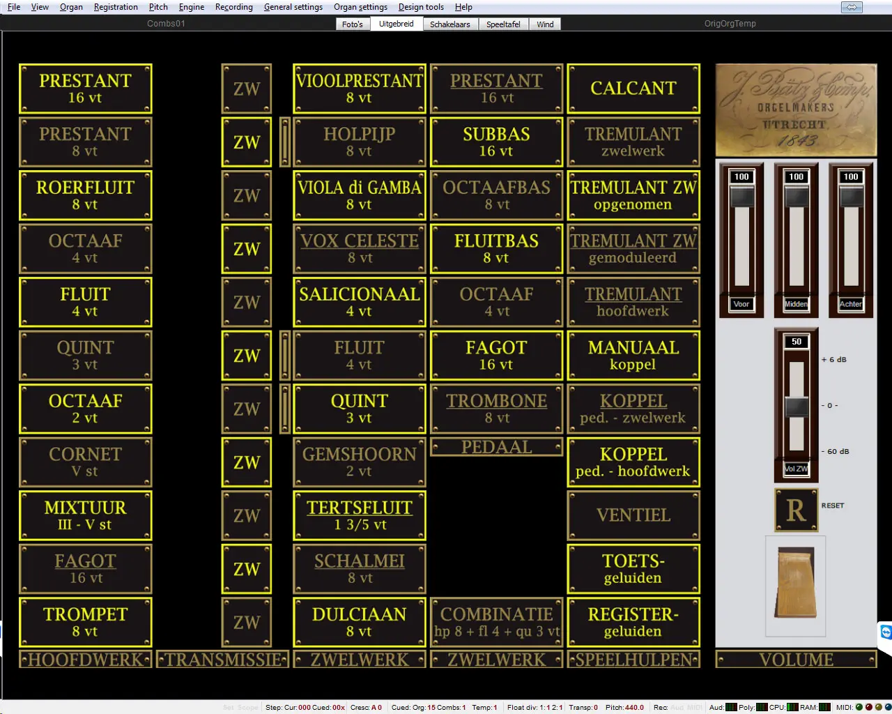 Temperament: Gelijkzwevend (natuurlijk in Hauptwerk omschakelbaar naar