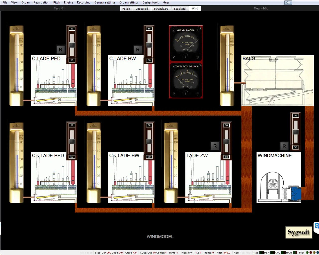 Met de nieuwe versie Hauptwerk 5 en 6 is het windmodel iets te